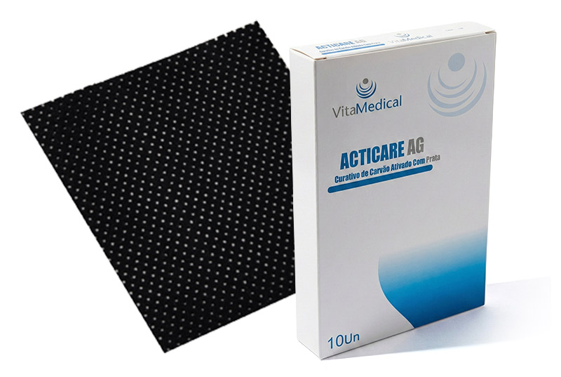 ACTICARE AG é uma cobertura não adesiva, estéril, composto de carvão ativado impregnado com prata que pode ser recortável para uma aplicação mais eficiente e completa da melhor forma necessária que se adapte a lesão.
