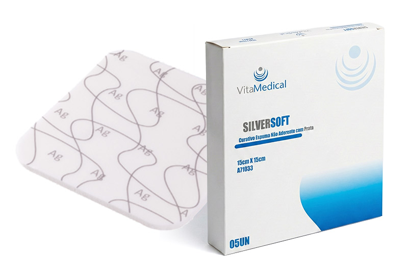 O SILVERSOFT é uma espuma de PU(poliuretano) impregnada com íons de prata, estéril, composto de película adesiva e transparente PU(poliuretano).. Com o curativo de feridas altamente absorvente, as bactérias e o exsudado da ferida são absorvidos no curativo ao mesmo tempo que o íon de prata pode ser liberado do curativo para atingir efeito